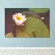 Une photographie de fond présente une délicate fleur de nénuphars avec des pétales roses clairs et un centre jaune vif. La fleur est entourée de grands coussins verts flottant à la surface de l'eau. L'eau reflète les couleurs de la fleur et des coussinets, créant une lumière douce et diffuse. L'ambiance générale est sereine et naturelle, mettant en valeur la beauté de la flore aquatique.