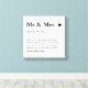 Ce magnifique canevas personnalisé Mr et Mrs est le cadeau mariage personnalisé parfait ou fiançailles présent pour tout couple. Doté d'une drôle de définition de "M. & Mme", ce mur élégant est un souvenir intemporel et réfléchi. Vous pouvez facilement personnaliser la définition avec une blague intérieure ou des souvenirs spéciaux, et ajouter les noms du couple et la date du mariage pour créer une pièce unique de décoration de maison. Cette toile personnalisée polyvalente est un cadeau idéal pour les Mariages comme cadeau unique et mémorable pour le couple heureux, pour les Fiançailles comme une façon réfléchie de célébrer un nouveau chapitre, ou comme un cadeau unique pour le ménage comme pièce murale sur mesure pour les jeunes mariés qui commencent leur nouvelle maison ensemble. Et dernier mais pas des moindres pour Anniversaires comme une façon parfaite de commémorer la journée spéciale. Le design minimaliste et moderne s'accorde à tous les styles de décoration, ce qui en fait un coup de coeur garanti pour les maisons minimalistes. Le Design noir et blanc se distingue sur n'importe quel mur.