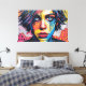 Le travail d'art numérique d'Otis Porritt présente un portrait saisissant en gros plan, éclatant d'une palette électrisante de rose chaud, de jaune vif et de bleu intense. Le visage du sujet est représenté avec des blocs de couleurs contrastés et audacieux et une texture dynamique rappelant le pointillisme, créant une esthétique pop art moderne. Des yeux bleus perçants retiennent le regard du spectateur, tandis qu'une raie noire sévère descend d'un œil, ajoutant une touche poignante. L'énergie vibrante, presque chaotique, des cheveux multicolores et du fond pointillé amplifie l'impact visuel saisissant de l'œuvre.