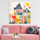 Maison faite d'un collage de pièces et de textures, coloré et amusant à regarder.