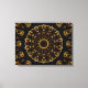 Impression de toile spéciale avec un mandala doré contre un arrière - plan brun foncé.