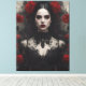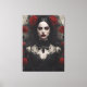 Une mariée gothique dans sa robe noire de mariage entourée de roses rouges est prête pour son mariage du jour d'Halloween. Art généré par l'IA