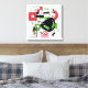 Ce graphisme innovant réimagine Marvin le Martien de Looney Tunes dans un contexte audacieux et moderne, mêlant animation classique et éléments arts numériques. Le design de Marvin se déroule sur fond de formes géométriques rouges et vertes vibrantes, créant un environnement dynamique et abstrait qui suggère un espace numérique ou virtuel. L'inclusion d'éléments tels qu'une barre de chargement et des motifs pixélisés met en lumière l'exploration de Marvin dans le monde numérique, reflétant la nature futuriste et technophile de son personnage. Ce graphique mêle nostalgie et design contemporain, parfait pour les amateurs d'animation traditionnelle et d'art moderne.