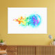 Grande méduse irisée, artistiquement dessinée, brillante, avec de longues tentacules sur le blanc, peinte sur l'arrière - plan multicolore. Méduse arc-en-ciel.
