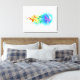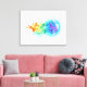 Grande méduse irisée, artistiquement dessinée, brillante, avec de longues tentacules sur le blanc, peinte sur l'arrière - plan multicolore. Méduse arc-en-ciel.