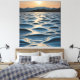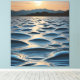 An artist's rendering of gently rolling waves in the light of dawn, combining a minimalist approach with the natural beauty of the ocean. The contrast between the soft tones of the water and the warm glow of the sun creates a calm and serene atmosphere, ideal for conveying peace and reflection.