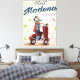 Modena Italie Scooter dessin animé de style vintage poster de vacances.