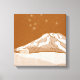 Illustration de la cabane Syme sur le pic Fathoms, avec le mont Taranaki en arrière - plan. Ce design est dessiné dans un monochrome marron et a les étoiles Matariki au-dessus dans le ciel. Un design pour tous ceux qui aiment le randonnée et le tramping en Nouvelle-Zélande.