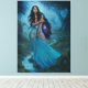 Huile de 18 x 24" sur le panneau la belle Moon Maiden passe dans une clairière, baignée de lumière lune, ses cheveux foncés soufflant dans la brise douce, bénissant la nuit.