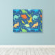 Motif de silhouette Dinosaure colorée. Tyrannosaurus Rex, titanosaures, Tricératop, raptors, Ankylosaures, Dino-Birds, Stegosaurus, Apatosaurus, Pteranodon et plus dans un motif coloré en arrière - plan bleu, et dinosaures en vert, bleu, jaune et orange.