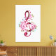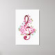Pink treble clef with delicate, detailed pink Japanese cherry blossoms against white background painted over with light blue paint Blooming pink sakura.
