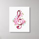 Pink treble clef with delicate, detailed pink Japanese cherry blossoms against white background painted over with light blue paint. Blooming pink sakura.