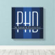 Une toile cadeau de doctorat avec un schéma de couleurs bleu et blanc. Customisez simplement le nom, ajoutez cette toile à votre panier, et faites-la don au diplômé. Nom Bleu Graduation PhD Canvas Imprimer Conception de vacances | ©Melissa Patton - Designer