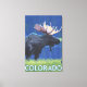Moose in Moonlight - Colorado - LP Poster original - a été créé en 2008. Cette image représente des scènes du Colorado.