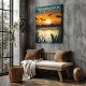 Capture the calm of the Okavango Delta with this safari inspired canvas print. Warm sunset tones, reflective water, and soaring birds bring an elevated travel poster look to any room. Perfect for modern boho decor, safari themed spaces, offices, and gifts for Africa travel lovers.