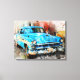 Un Oldtimer bleu à La Havane à Cuba à Aquarell