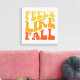 Cette oeuvre d'art audacieuse et vibrante sur le thème des chutes contient l'expression "Feels Like Fall" qui est affichée en évidence dans une police d'inspiration rétro et croustillante. Le texte est agencé dans une disposition dynamique et ludique qui attire l'oeil et ajoute un sens du mouvement à la conception. La palette de couleurs chaudes de dégradé passe du jaune doré à l'orange profond, capturant parfaitement les riches teintes des feuilles d'automne. La simplicité du design, associée à sa typographie nostalgique et à ses couleurs saisissantes, en fait un choix parfait pour la décoration saisonnière, les vêtements ou les matériaux promotionnels célébrant l'arrivée de l'automne. Cette oeuvre est idéale pour évoquer les sentiments cosy et nostalgiques associés à la saison d'automne.