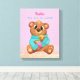 Décorez la chambre de votre enfant avec un ours mignon mangeant du miel dans un pot avec un nom et un message personnalisés sur fond rose.