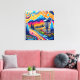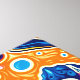 Art unique de l'air représentant un parcours de golf à disques vintages coloré rétro, des pins et des montagnes.