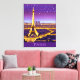 Toile dans une illustration impressionniste de Paris contre un ciel étoilé violet, avec la Tour Eiffel illuminée de dôme
