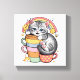 Admirez le charme des " Pastel Paws & Rainbow Sips ", un design délicieux avec un adorable chaton gris niché au milieu d'une pile de tasses colorées, le tout face à un arc-en-ciel pastel doux. Cette illustration fantaisiste saisit l'essence de la culture kawaii, alliant des tons pastel apaisants à des éléments ludiques comme des étoiles souriantes et des abeilles bourdonnantes.
