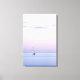 Soft and dreamy pastel purples and blues make up this seascape image. A solo sail boat sailing on gentle blue waters. A misty pink sky with some soft clouds floating above. Calming and tranquil image.