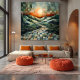 Apportez chaleur et profondeur à votre espace grâce à cet art paysager abstrait qui comprend un soleil éclatant, des collines géométriques ondulantes et un chemin serein composé de tuiles complexes. Les tons vifs orange et vert créent un équilibre harmonieux, évoquant un sentiment de tranquillité et d'inspiration. Cette combinaison unique de nature et de formes abstraites est parfaite pour des intérieurs modernes, ajoutant un point de convergence dynamique à toute chambre. Idéal pour les amateurs d'art et les amoureux de la nature, cette toile transforme les murs en espaces de contes envoûtants.