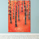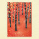 Peinture d'un bouleau ou d'une forêt de trembles à l'automne. Bois rouge, orange et jaune semi-abstrait.