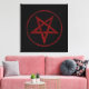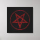 Pentagramme rouge, inversé, texturé en cercle, sur arrière - plan noir. Symbole occulte 666
