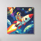 Toile Petit garçon à bord d'un navire à fusée volant dan