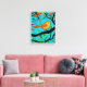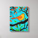 Illustration d'un petit oiseau orangé et bronzé perché sur une branche, avec des boutons de fleurs de corail orange, contre un arrière - plan turquoise doux