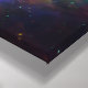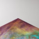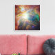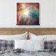 A bright and colorful outer space photo of the orion nebula. Turquoise yellow and orange ethereal plasma with luminous highlights create a colorful composition.