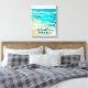 Ajoutez une ambiance marine et salée à vos murs avec cette impression de toile enveloppée sur la côte avec des vagues tropicales turquoise de l'océan, des étoiles de corail et la légende "la plage est mon endroit heureux" dans une police d'écriture marine bleu marine nautique. Art par KL Stock