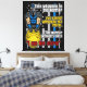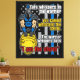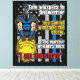 Impression de toile d'officier de police avec un guerrier de Troie aux couleurs de la police en bleu et argent armure. Un guerrier de police tient un badge de police en or. Arrière - plan du drapeau américain, la ligne bleue mince traverse le drapeau. Le destin murmure au guerrier que vous ne pouvez pas résister à la tempête. Le guerrier murmure : JE SUIS LA TEMPÊTE. Mur de police pour policiers et services de police.