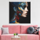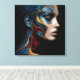 Portrait abstrait présentant le visage d'une femme en profil à l'aide de la technique du vitrail. Une partie de son visage et de son cou sont ornés de motifs abstraits complexes avec des lignes dorées et des garnitures texturées. L'éventail complet des couleurs crée un chef-d'oeuvre artistique et dynamique, ce qui en fait une oeuvre d'art vraiment belle et captivante.