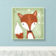 Un tableau numérique d'un renard capricieux est visible contre l'arrière - plan vert à grains de bois. Des petites fleurs blanches sont visibles sur les vignes accrochées à droite. De belles peintures aux couleurs douces sont parfaites pour n'importe quelle zone boisée, que ce soit une crèche pour bébé, une garderie ou une salle de jeux.