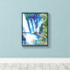 Une peinture numérique d'une cascade trouvée en Californie, Burney Falls. Un papillon brun et blanc se trouve sur une branche qui s'étend à travers la vue pittoresque. Copyright ©2023 Kimberly J Tilley.