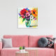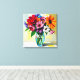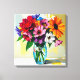 A floral wall art. A pretty canvas print with an illustration of a colorful vibrant glass vase of flowers done in an ai impasto style oil painting.