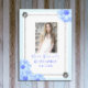 Design élégant bleu bébé clair et floral qui peut être facilement personnalisé! Ce design luxueux présente des fleurs gris et bleu clair. Modèle photo via Pixabay sous licence CC0 et doit être remplacé par votre propre photo