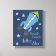 Une fusée bleu et vert moyen sur un arrière - plan bleu nuit étoilé avec "Twinkle Twinkle Little Star" écrit en blanc. Ceci fait partie d'un ensemble de coordination en trois pièces avec les tirages ci-dessous : com