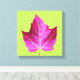 Decorate a wall with this canvas art print that features the photo image of a red autumn Maple leaf contrasted against a bright, green background. A colorful, botanical design! Select your canvas print size and other options.