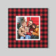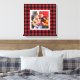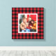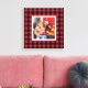Cette ferme style plaid Christmas vacances mur toile d'art dispose d'un espace photo de famille carré personnalisé encadré par un chèque de buffle rouge et noir / arrière - plan à motifs plaid. Conseil photo : recadrez votre photo sur une forme carré avant de la télécharger.
