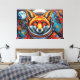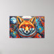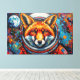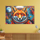 Cette œuvre d'art vibrante d'Otis Porritt présente un renard saisissant, rendu avec des traits riches et texturés, regardant avec confiance depuis l'intérieur d'un casque d'astronaute. La fourrure orange et blanche du renard contraste avec le bleu profond de sa visière et le rouge audacieux de son scaphandre, complété par un patch de drapeau américain. Derrière l'explorateur intrépide, un cosmos tourbillonnant éclate de bleus, de violets et d'orangés vifs, parsemé de corps célestes, dont une lune proéminente. Le style dynamique et pictural donne au médium numérique une qualité tactile, donnant vie à la scène cosmique.