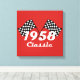 Retro 1958 Classic Black & White Checked Race Drapeau sur Arrière - plan rouge. Ce design rétro est parfait pour la personne née en 1958. Design classique 1958 parfait pour 60ème anniversaire de fête ou cadeaux de vacances. Design génial de TLS Designs.