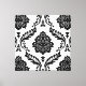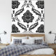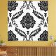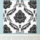 A vintage style decorative damask surface pattern influenced by rococo classical design in black detail on a white background.