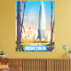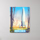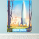 Ross 128 B Affiche de science-fiction d'un navire-fusée assis à la surface de la planète pendant qu'un alien couchait le soleil.