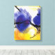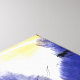 Expression Abstraite contenant les couleurs bleu moyen, or, olive, orange foncé, noir, blanc, rouge orange, violet foncé.