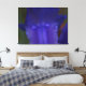 This striking macro photograph captures the intense, deep blue and purple hues of an iris petal, glistening with perfectly formed water droplets. The shallow depth of field keeps the focus sharply on the intricate details and textures of the wet petals, evoking a sense of tranquility and the freshness of a moment just after a rain shower. This image of natural beauty conveys feelings of hope and serenity, making it an engaging and visually captivating piece for any viewer.
