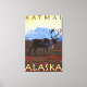 Scène Caribou - Katmai, Alaska - Poster Vintage voyage a été créé en 2007. Cette image représente des scènes de Katmai, AK.
