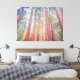 L'image capture une vue à faible angle d'une forêt dense d'arbres séquoiens imposants. Les arbres ont une écorce épaisse, rougeâtre-brun et s'étendent vers le haut, remplissant le cadre. Le feuillage vert est visible sur certains arbres et dans l'arrière - plan, créant un contraste avec les troncs rougeâtres. Le ciel est partiellement visible à travers la canopée, apparaissant lumineux et diffuse.